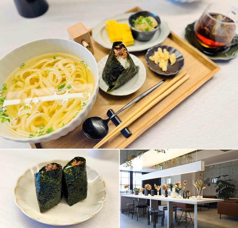 国産小麦のきぬあかりを使用したもちもち食感の自家製麺と、宗田鰹と利尻昆布をブレンドした風味豊かなだしが魅力のうどん屋。平日のランチタイム限定で、ハツシモの7分づき米と有明のりで作るおにぎりも楽しめます。カツオとゴマの香ばしさが食欲をそそる「おかか」や、はちみつの優しい甘みが溶け込んだ「梅」など全部で10種類あり、どれもうどんのお供にぴったり。カフェさながらのおしゃれな空間で、じっくり味わいたいセットメニューです。