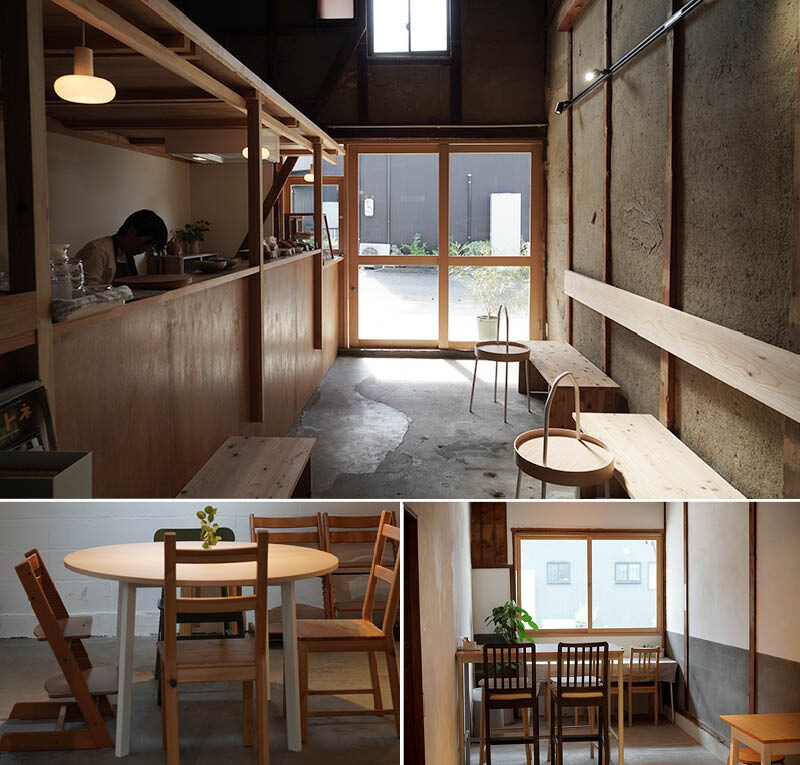 店内に入ると、木の温もりに心がほっとほぐれます。丸テーブルやベンチ席などがあり、イートインスペースも充実。子ども用の椅子も用意されているので、小さなお子さん連れでも安心して過ごせます。