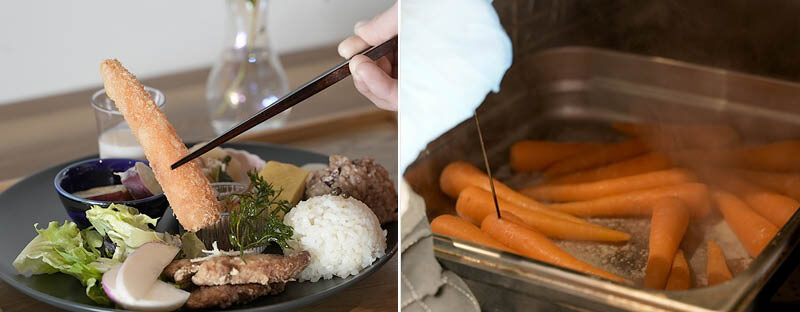 プレートの中でひときわ目を引くのは、甘みの強い「吟醸にんじん」を皮ごと蒸して揚げた“まるごと人参揚げ”。安心安全な野菜だからこそできる料理だといえます。
