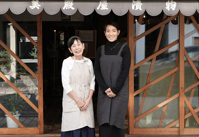 美殿町商店街の一角にある「美殿屋漬物店」の看板が残る建物。10月14日、ここに新しく『発酵ごはん みとの』がオープンしました。