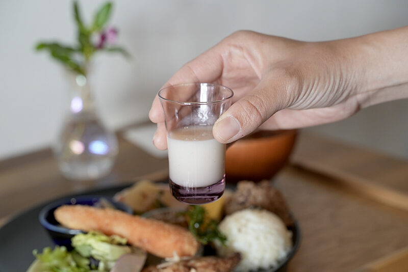 米麹から作る、アルコールを含まない甘酒が添えられているのもうれしいポイント。米の香りをしっかりと感じられるまろやかな一杯です。