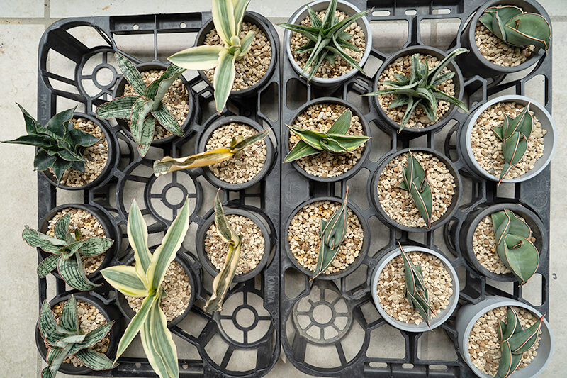 植物たちは、主にタイやインドネシアのナーセリー(種苗育成場)から輸入していますが、検疫の関係で根が切られた状態で届きます。そこから新たに根を生やす「発根管理」を経て、ようやく店頭に並びます。芽が出るまで1ヶ月以上、時には数ヶ月かかることもあるうえ、全ての株がうまくいくわけではありません。とても繊細で難しい作業なのだそう。