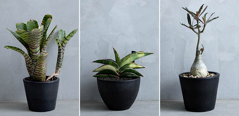 ラインアップの一つが、ふっくらと膨らんだ幹を持つ塊根植物。乾燥地帯を原産とし、幹に水を蓄える性質があるため、頻繁な水やりは不要。成長もゆっくりなため、あまり手をかけずにのんびり育てられるのも魅力です。